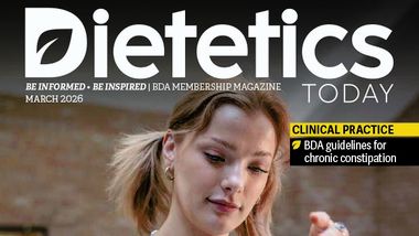 Dietetics Today is the official BDA members' magazine, posted out to arrive the first week of each month. It is the most valued BDA communication and features include; clinical articles, member stories, dietetics in the media, BDA campaign news, volunteer corner, student articles, membership updates, events and courses and lots more.