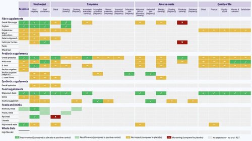 In a clinical environment, dietitians may use this table to provide evidence-based advice for constipation, tailored to patient symptoms, preferences, tolerability and comorbidities.